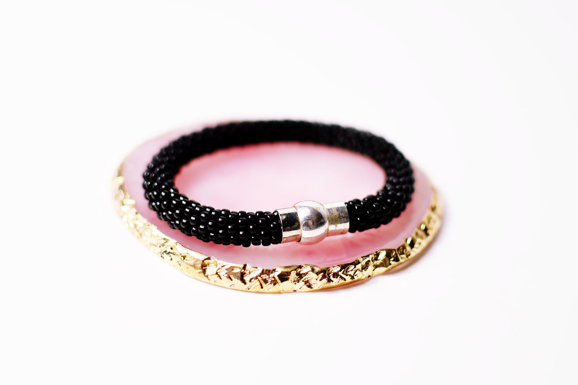 Czarna bransoletka z drobnych koralików.