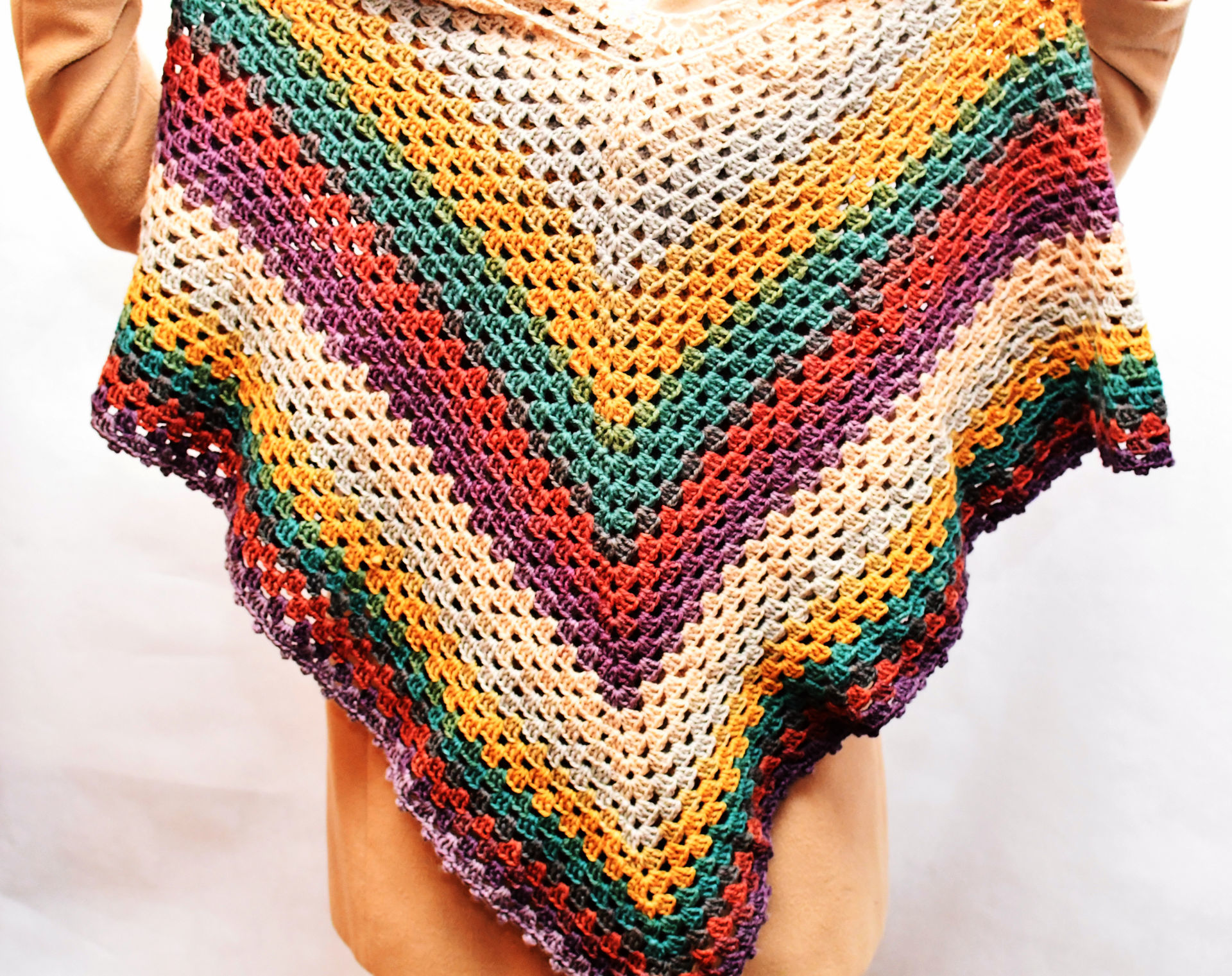 Wełniane, ażurowe poncho w jesiennych kolorach. Dostępne tylko na zamówienie