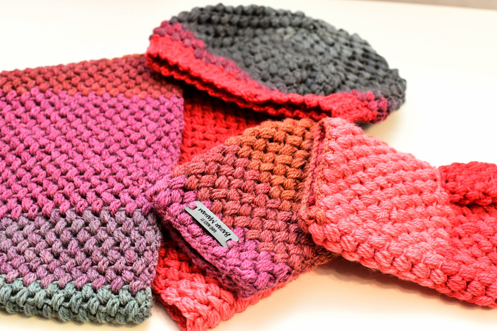 Komplet składa się z czapki, komina i rękawiczek. Dostępny od ręki.
